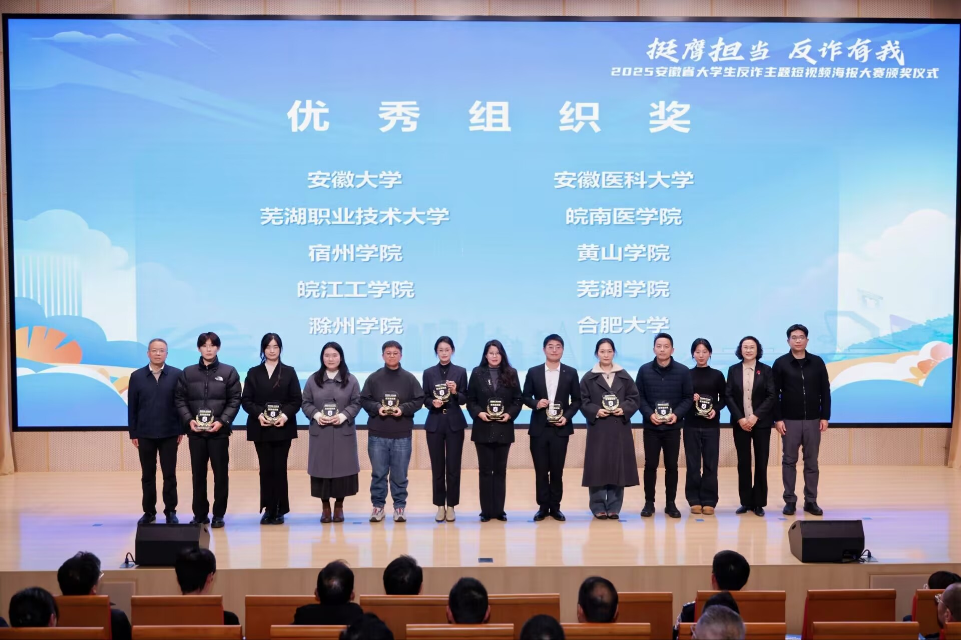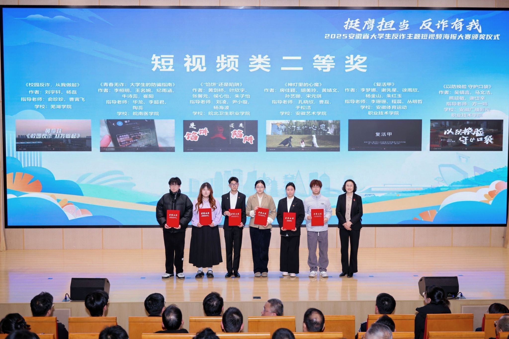 近日,由安徽省通信管理局、安徽省公安厅、安徽省教育厅、共青团安徽省委员会、安徽省学生联合会等部门联合主办的2025年全省大学生反诈主题短视频海报大赛评选结果揭晓,我校学生社团新视界传媒协会创作的反诈主题短视频作品《青春无诈:大学生的防骗指南》在全省众多参赛作品中脱颖而出,荣获大赛短视频组二等奖,我校获优秀组织奖。