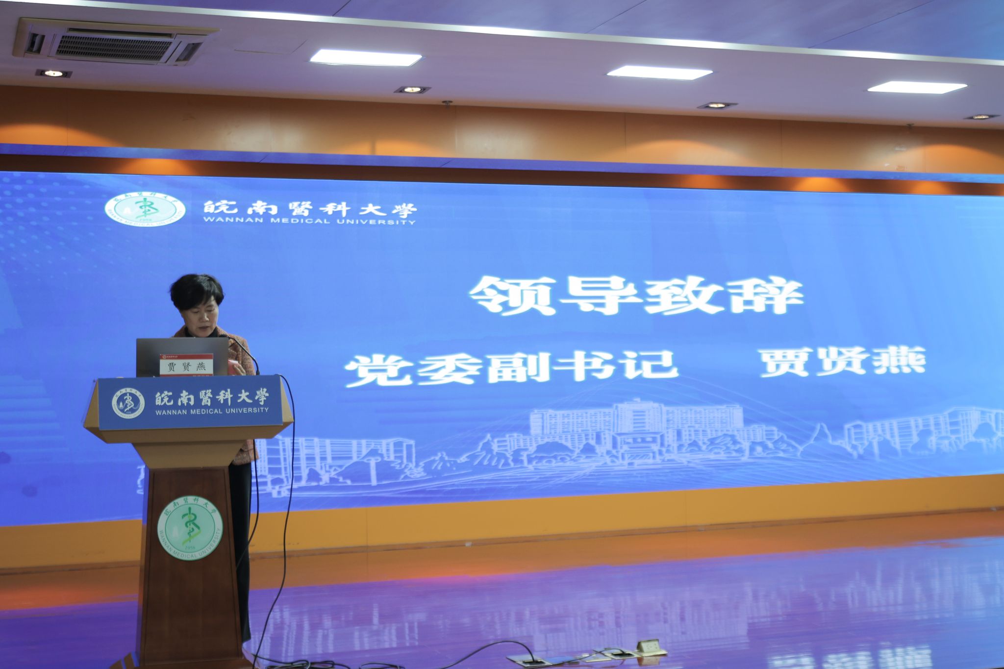 贾贤燕代表学校向朱晨校友返校表示热烈欢迎和衷心感谢。她指出朱晨主任是皖医优秀校友的杰出代表,他从皖医学子成长为长江学者、临床与科研并重的医学领军人才,用实际行动诠释了 “精医、尚德、求实、自强” 的校训精神,是全体师生学习的榜样。她希望广大青年学子以优秀校友为标杆,坚定学医初心、锤炼过硬本领,把个人理想融入国家医疗卫生事业和民族复兴伟业,在医学道路上勇毅前行、不负韶华、不负白衣使命。
