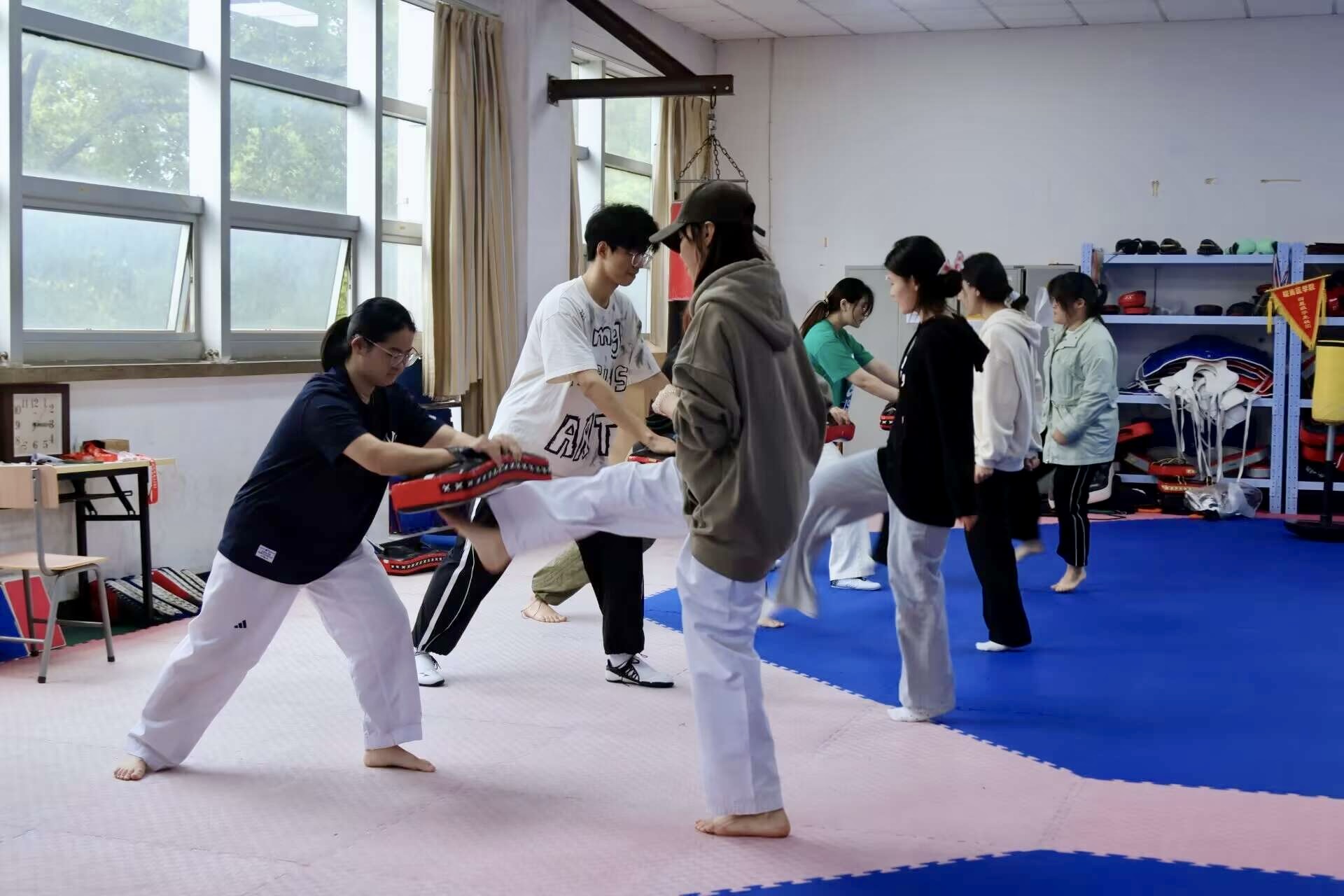 本届体育运动节沿袭往年的“校、院两级学生会协同合作,学生社团积极参与”的活动形式,共有11所学院、11个学生社团申报承办28个趣味项目。4月11日、12日,体育运动节热情开赛,医学影像学院团委倾力打造“同心协力”项目,引导同学们凝心聚力、携手共进,锤炼团队协作能力。公共卫生学院团委带来“旱地龙舟”项目,用整齐的步伐和昂扬的斗志,诠释着团结一心、拼搏向前的精神内核。跆拳道协会开展的“极速争霸”,重点考验反应速度和竞技比拼;瑜伽协会组织的“你比我猜”,动手又动脑考验同学默契配合;健美操协会带来的“毽步如飞”,融合踢毽与健身韵律,趣味又健身;乒乓球协会策划的“乒乓大转盘”,互动体验轻松有趣。活动现场气氛热烈、欢声笑语不断,同学们在轻松愉悦的氛围中锻炼身体,绽放青春,增进友谊,培养团队合作精神,养成科学健康的生活习惯。