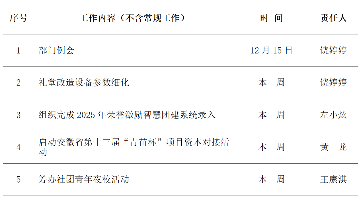 校团委2025-2026学年第一学期第十五周主要工作安排表