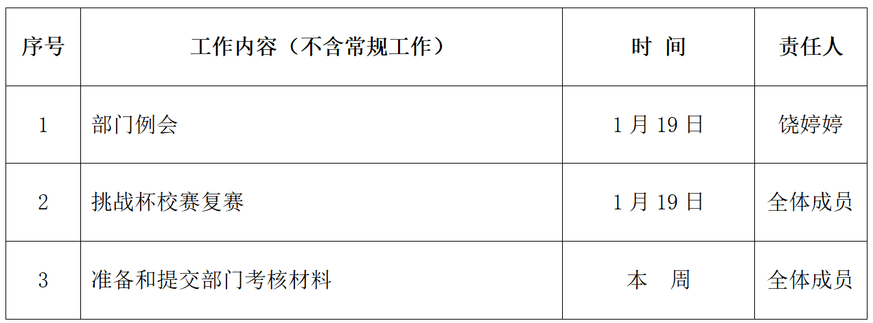 校团委2025-2026学年第一学期第二十周主要工作安排表