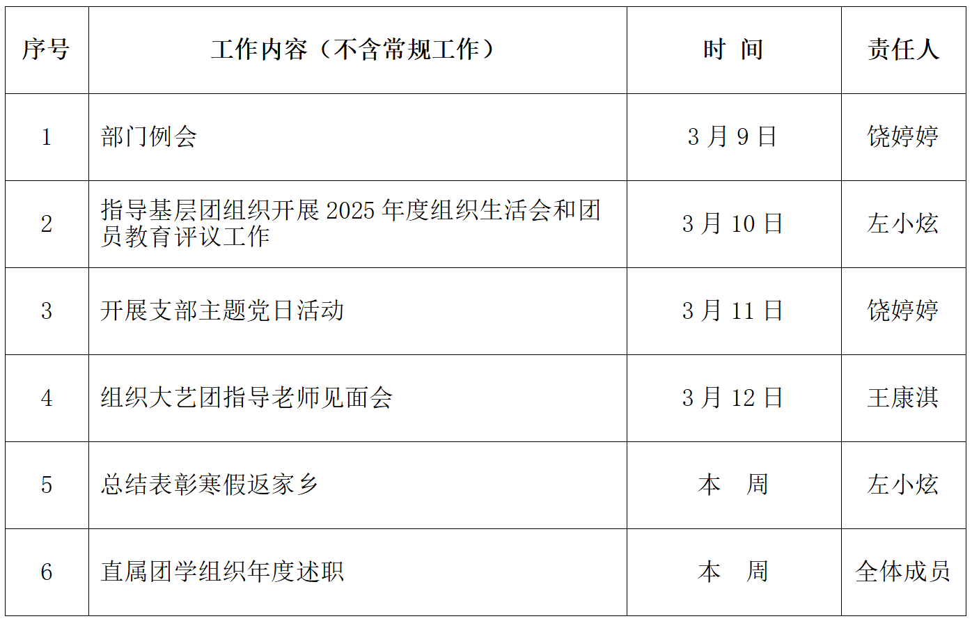 校团委2025-2026学年第二学期第一周主要工作安排表