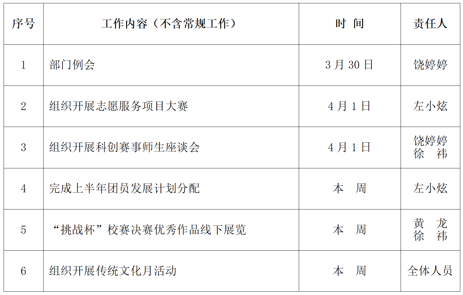校团委2025-2026学年第二学期第五周主要工作安排表