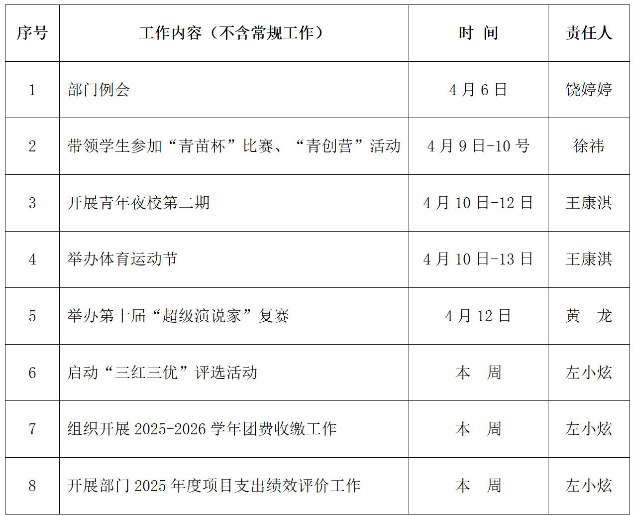 校团委2025-2026学年第二学期第六周主要工作安排表